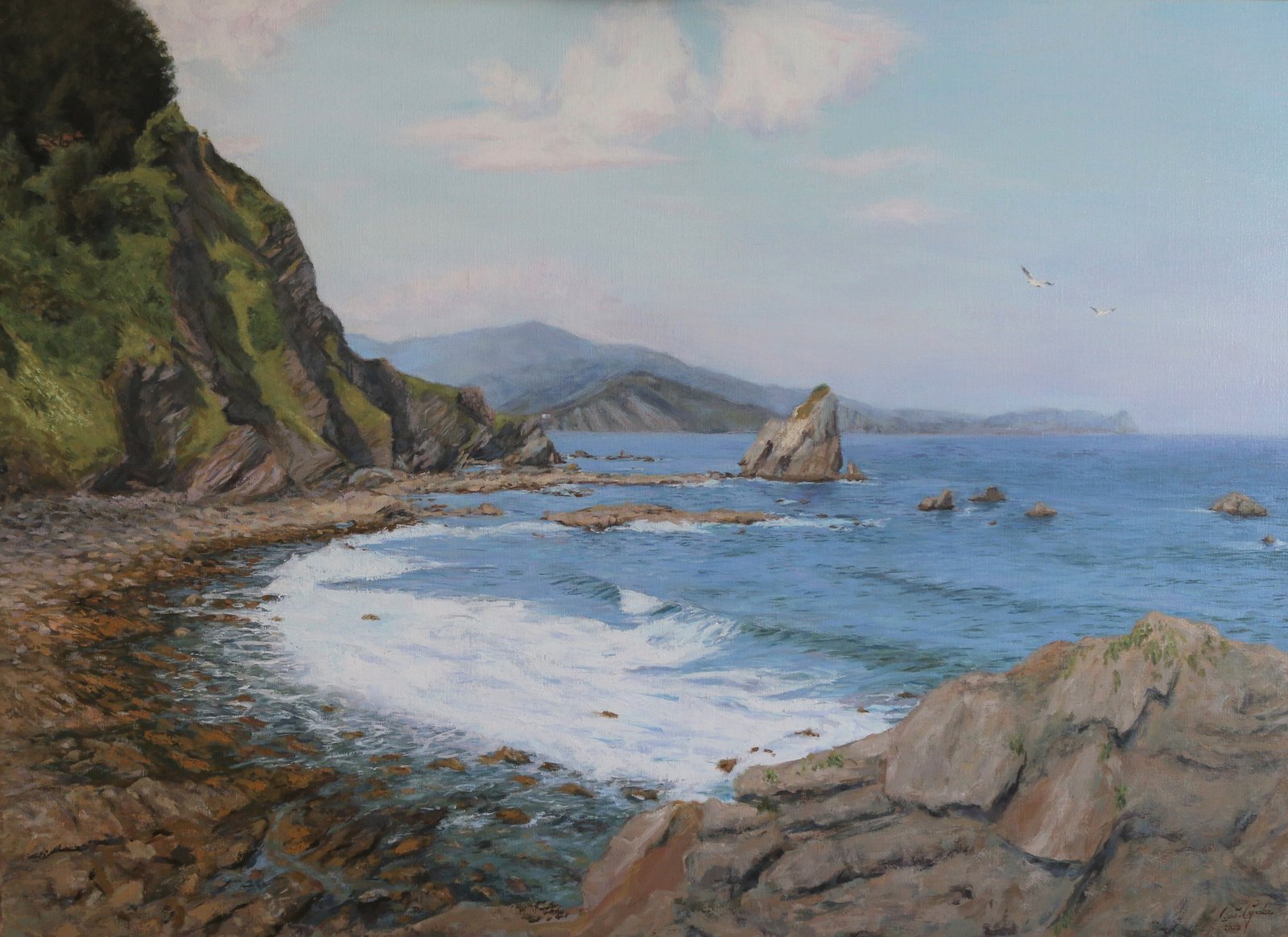 Mar de EnsueñoPaisajes Óleo sobre lino 100 x 73 cm En San Juan de Gaztelugache en la localidad vizcaína de Bermeo se encuentra una fortaleza de rocas y oleaje, un mar con mucha fuerza y grandioso, un mar soñado.